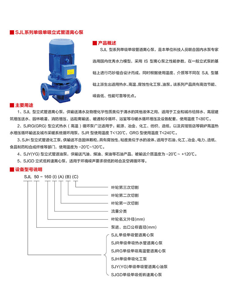 SJL系列單級(jí)單吸立式管道離心泵