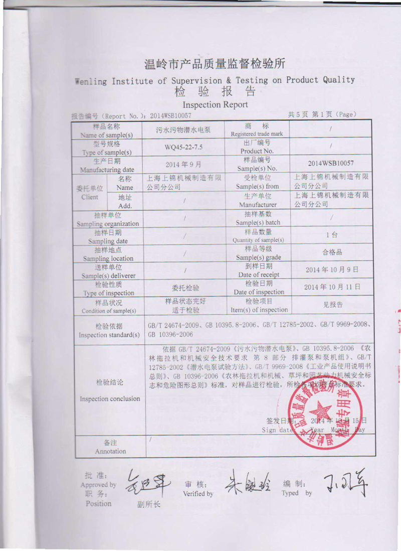 排污泵檢驗報告7.5